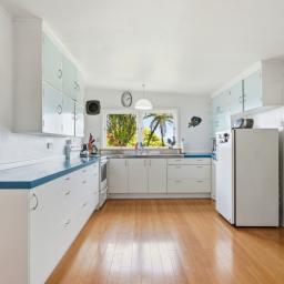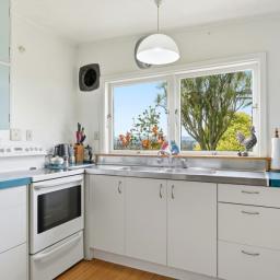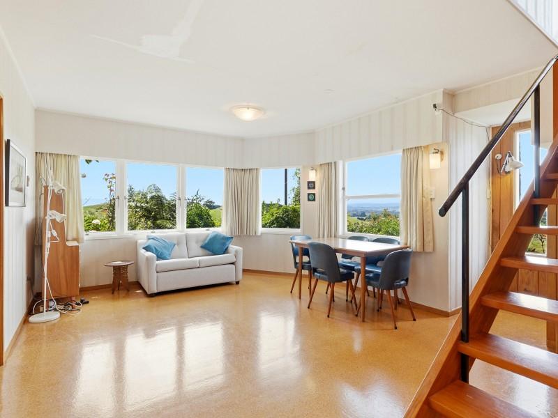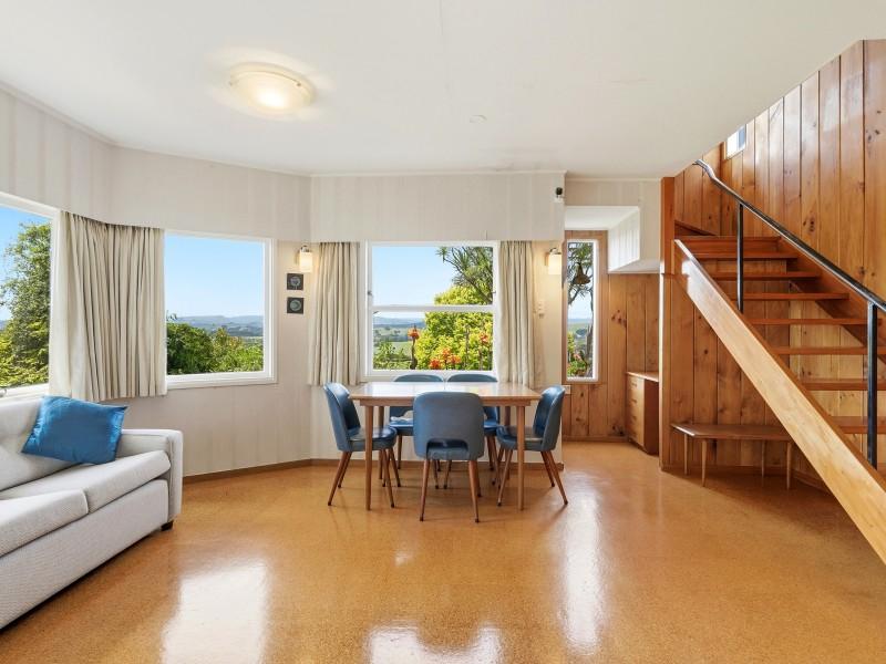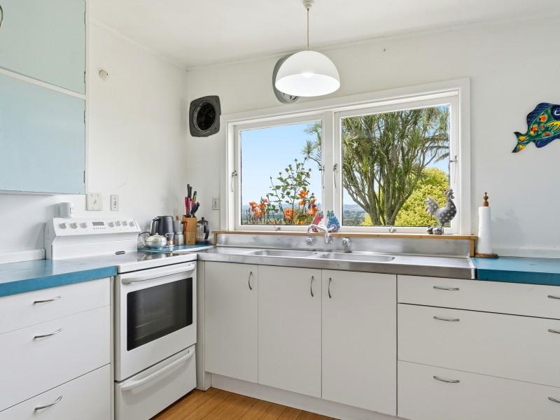 The large kitchen is a standout, offering room for a dining table, excellent storage, and breathtaking views. A separate dining/family room also captures the outlook, making everyday living feel elevated. With two bathrooms, a generous storage room (think walk-in pantry vibes), a wood burner, heat pump and good insulation, comfort is well covered.