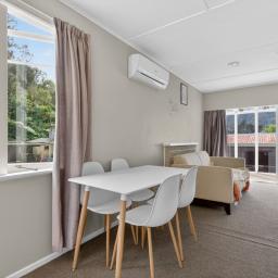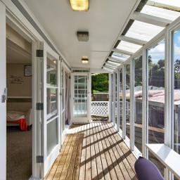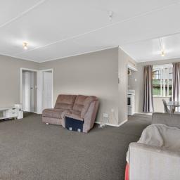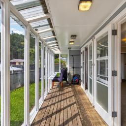 A glass-enclosed veranda/sunroom welcomes you into the home - a warm, inviting space where you can soak up the sunshine year-round, even on cooler or windy days. From here, step through to the spacious lounge and dining area, offering a comfortable hub for everyday living. The layout is complemented by a practical kitchen and a combined bathroom and toilet.