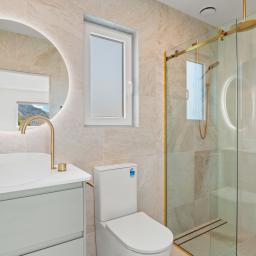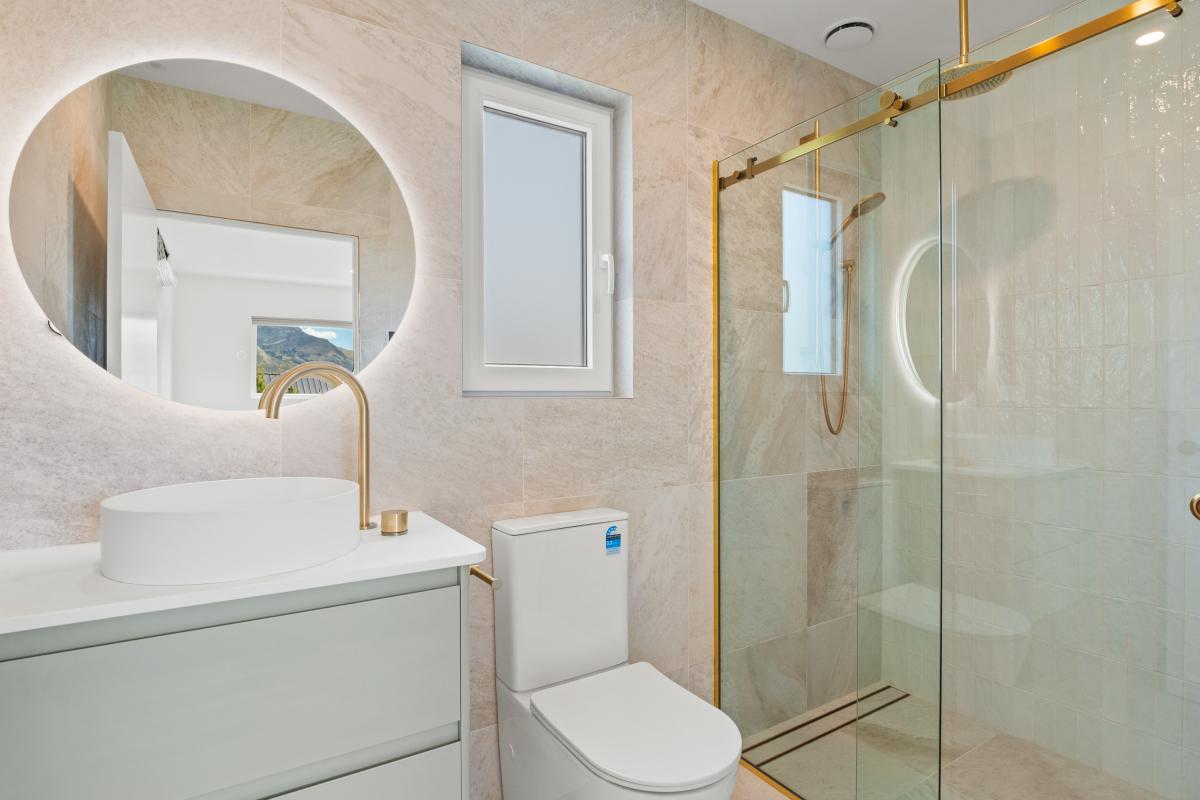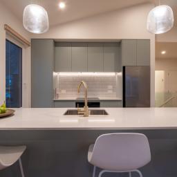 The house features three bedrooms and an office/nursery, 2.5 bathrooms with high quality tiling and fixtures and an open-plan living area which seamlessly extends to a generous deck overlooking the golf course. Every detail has been thoughtfully considered, from the uPVC windows, a high insulation rating, ducted heating system throughout, underfloor heating in the bathrooms and sleek built-in robes with high quality finishing just to name a few! High ceilings and plentiful, well positioned windows ensure light floods this home and provides 360 degree panoramic views.