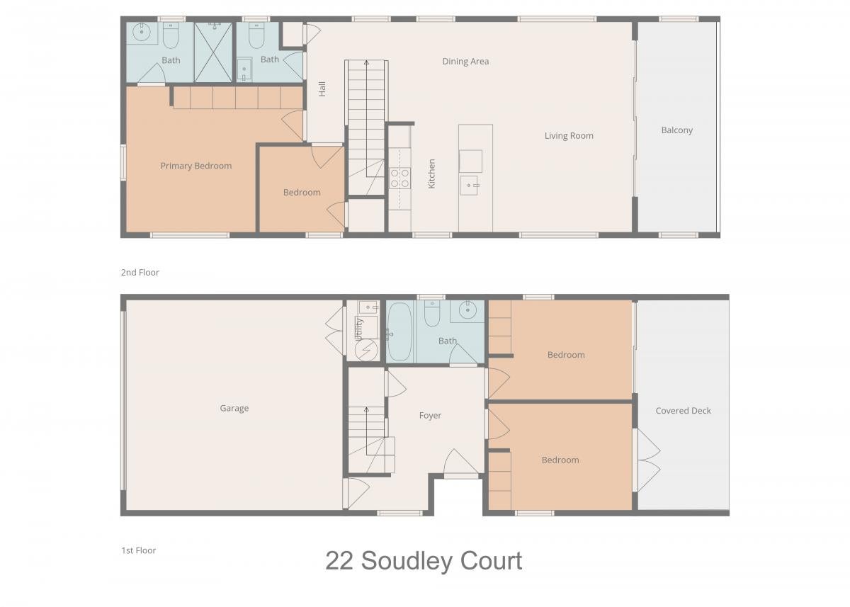 The two downstairs bedrooms extend to a second deck at ground level which gives way to the well landscaped, easy care and spacious outdoor garden. A large double garage and adjoining off street paved area provide convenient and ample parking.