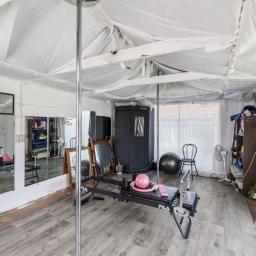 - Second garage at the rear currently used as a workout space or pool room
