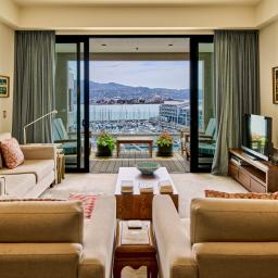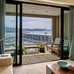 Stretching across the full width of the building, the apartment captures two distinct outlooks - marina and harbour views to the north, balanced by leafy Waitangi Park and vibrant cityscapes on the opposite side. The outlook evolves throughout the day, from soft morning light across the water to shimmering evening reflections.