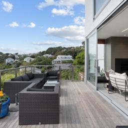 From almost every room you'll enjoy sweeping green views over Wadestown, harbour glimpses, Mt Kaukau and the ridgeline - a constantly changing backdrop of light and sky, day and night.