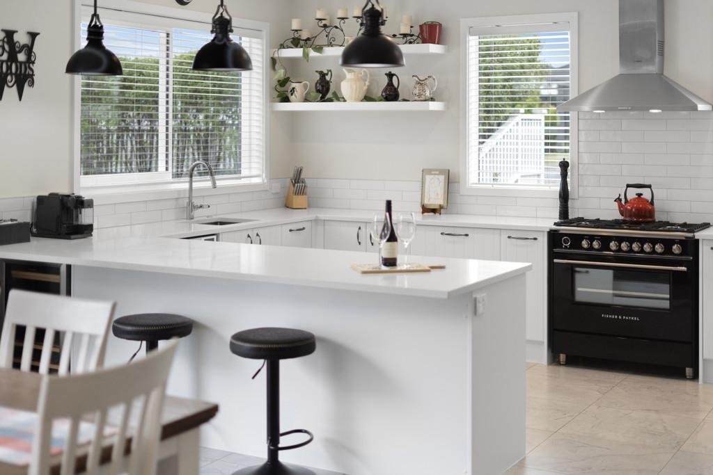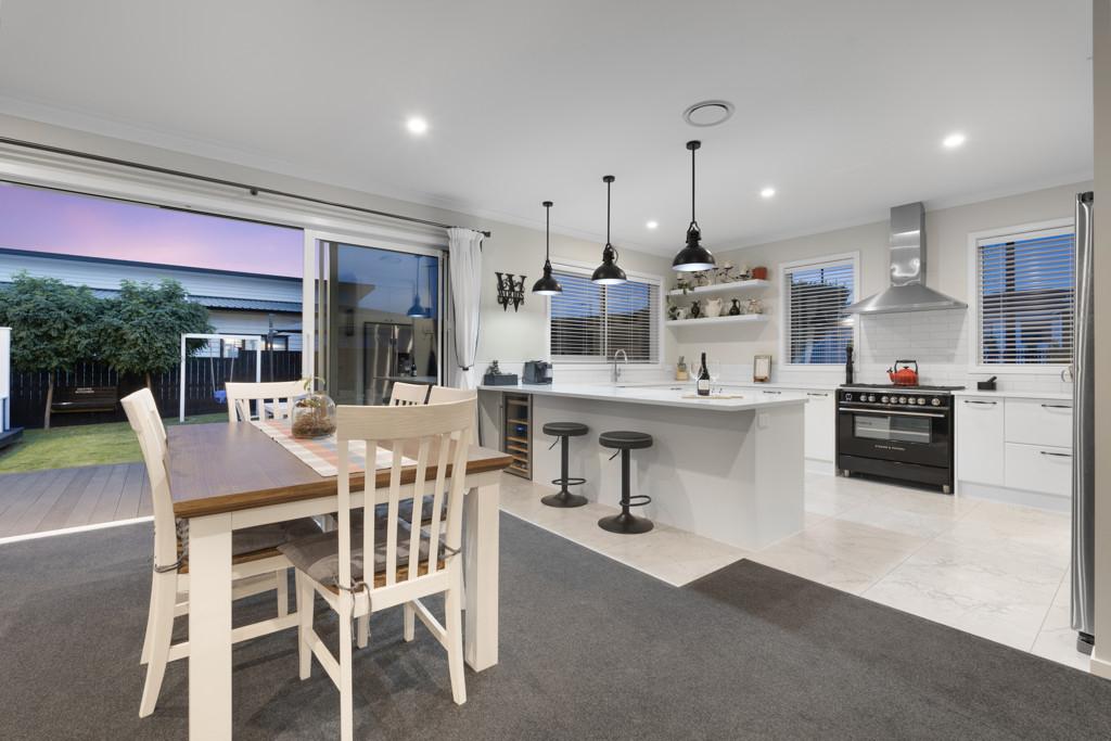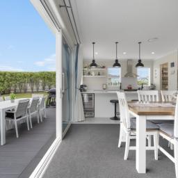 At the heart of this beautiful home is the expansive open-plan kitchen, dining and living zone, a space where homework happens at the island, dinners stretch into long conversations, and entertaining feels effortless. The kitchen is a chef's dream ~ absolutely huge and beautifully specified, complete with two Fisher and Paykel ovens, extensive bench space and a full scullery to keep everything organised. Sliding doors open seamlessly to decks and the lawn, creating easy indoor-outdoor flow for summer barbecues and an excellent vantage point to watch kids and pets play.