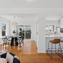 Step inside to find a home that exudes warmth and sophistication. The high ceilings and original timber floors provide a stunning backdrop to the modern renovations throughout. At the heart of the home, a sleek, updated kitchen and a contemporary bathroom cater to every modern need. The open-plan living and dining area-anchored by a cozy gas fireplace-flows effortlessly through French doors onto a sun-drenched deck. It is the perfect spot for morning coffee or hosting summer BBQs while overlooking the fully fenced, flat garden where children and pets can play safely.