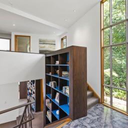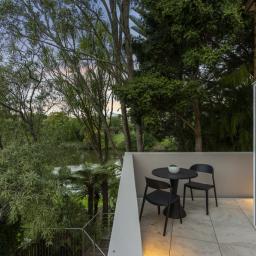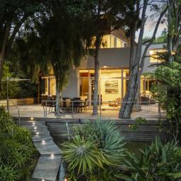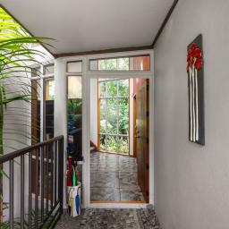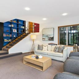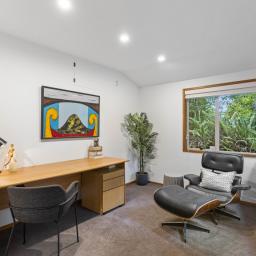 Enjoying a full 824sqm land holding, this four bedroom, two and a half bathroom home is split over two levels. This home offers a surprise through every door, with subtle angles and sweeping curves. Floor-to-ceiling windows and glass doors allow the tropical exterior to breeze into every bedroom and living space, and the design of the house provides ample wall space and shelving as the perfect platform for your art collection.