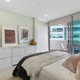 From the moment you walk in, you'll appreciate the sense of scale. The generously proportioned double bedroom easily accommodates full-sized furnishings and enjoys direct access to the balcony, filling the room with natural light and offering a peaceful retreat above the buzz of the city.