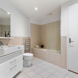 The bathroom is impressively spacious and features a full bathtub, a rare and welcome luxury in apartment living, combining comfort with practical design.