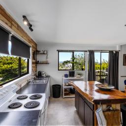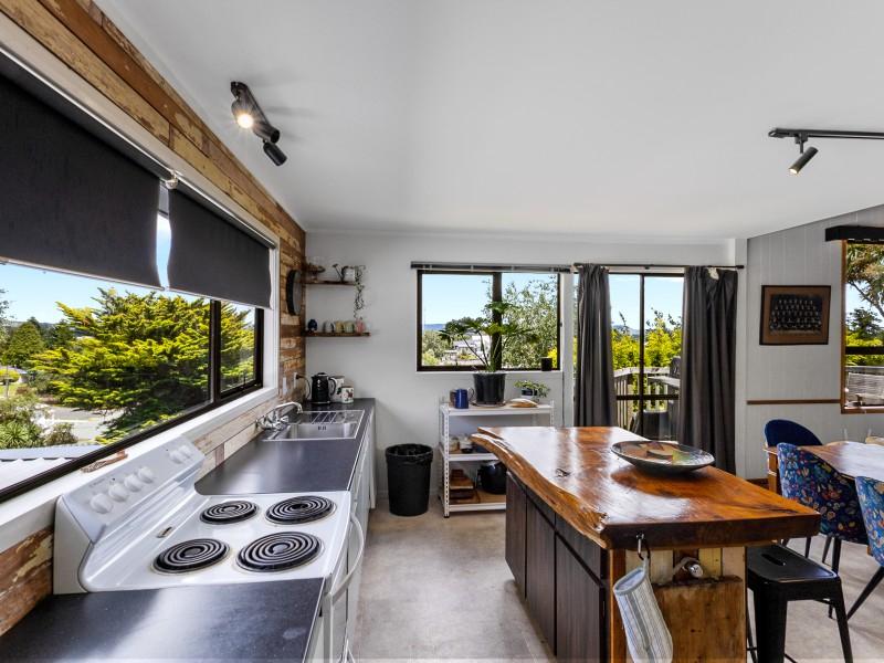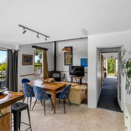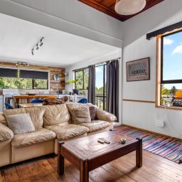 The open-plan living area forms the social heart of the home, flooded with natural light and flowing seamlessly onto a large deck built for entertaining. After a long day on the mountain, return home, pour a beverage of your choice, and settle in as the sun sets over the township — this is the kind of moment that makes Ohakune living so special.