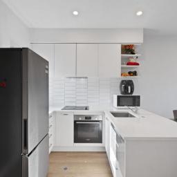 Designed with style inside and out, this residence is filled with natural light and finished in neutral tones that create an instant sense of home. The ground floor showcases a super-modern, open-plan living area that flows seamlessly to a private, east-facing deck and courtyard-perfect for outdoor dining. The stunning kitchen is a highlight, featuring engineered stone benchtops, soft-close ceiling-height cabinetry in a crisp white finish, and premium Bosch and Midea appliances. A separate guest toilet on this level and a heat pump in the living room add to the everyday convenience and comfort.
