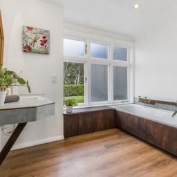The magnificent master suite is a private retreat, complete with direct access to an outdoor spa pool, providing the perfect place to relax at the end of the day. A boiler - fed radiator heating system ensures consistent, comfortable warmth throughout the home during the cooler months.