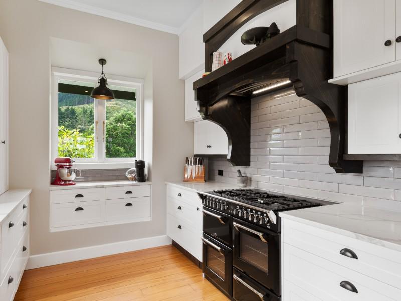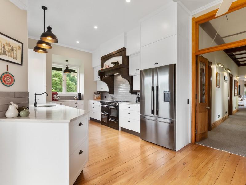At the heart of the home is an exceptional country kitchen, complete with top of the line gas cooking, a true gathering space for family and friends. The huge freestanding fireplace creates a warm winter ambience and offers the added practicality of cooking during power outages, enhancing the home's sense of self sufficiency.