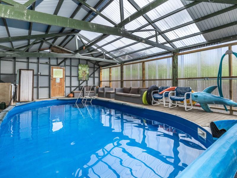 The expansive open plan living area flows seamlessly onto two sun drenched decks, perfectly positioned to capture sweeping views and breathtaking sunsets. For year round enjoyment, the heated indoor pool invites you to swim and unwind in every season, a standout feature that makes this property truly special.