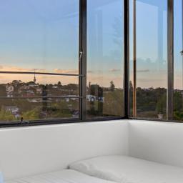 Generous volumes, layered levels and internal bridges create connection between spaces. Overhead glazing allows light to move through the home as the day shifts. From the main bedroom, views extend toward Hobson Bay. From the family living areas, the sky becomes part of the architecture.