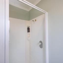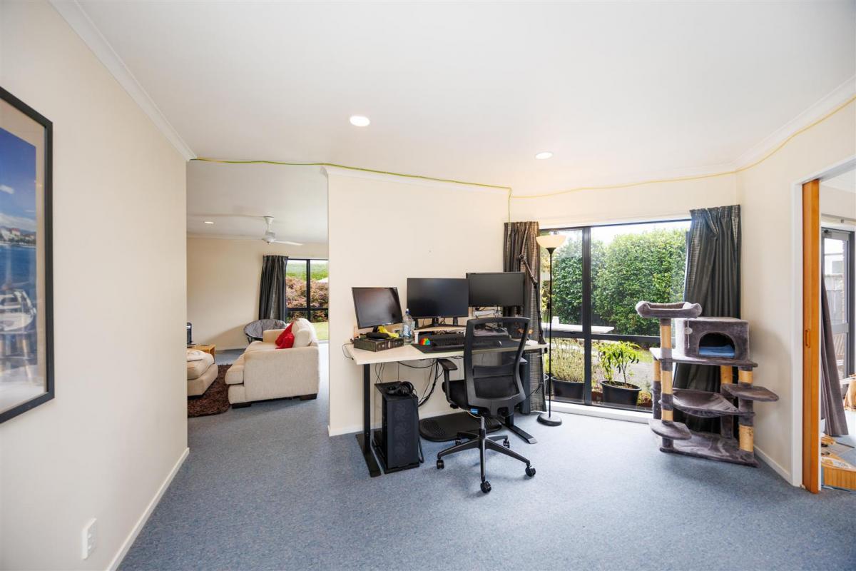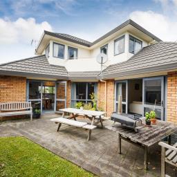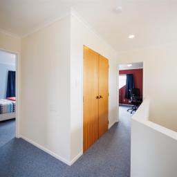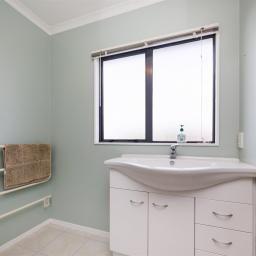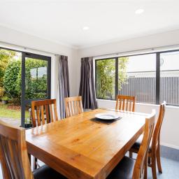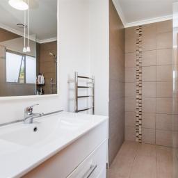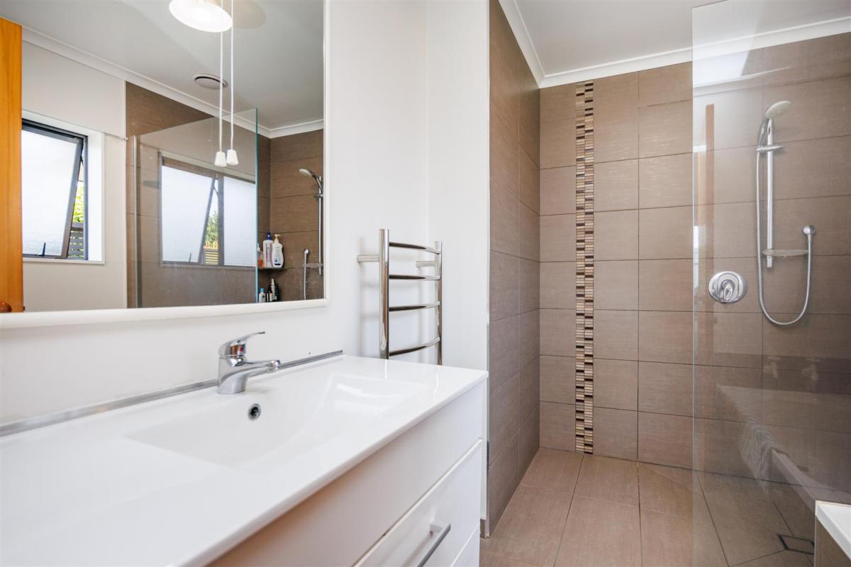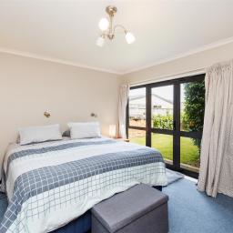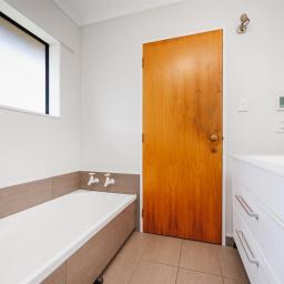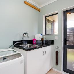 The primary suite features a tiled ensuite with both bath and shower cubicle. Down the hallway is a separate toilet area and family bathroom by the separate laundry area that accesses the partly covered West-facing paved area.