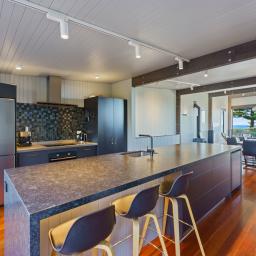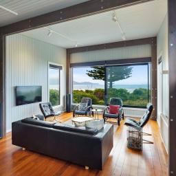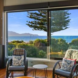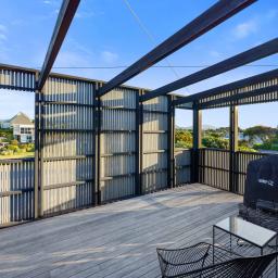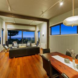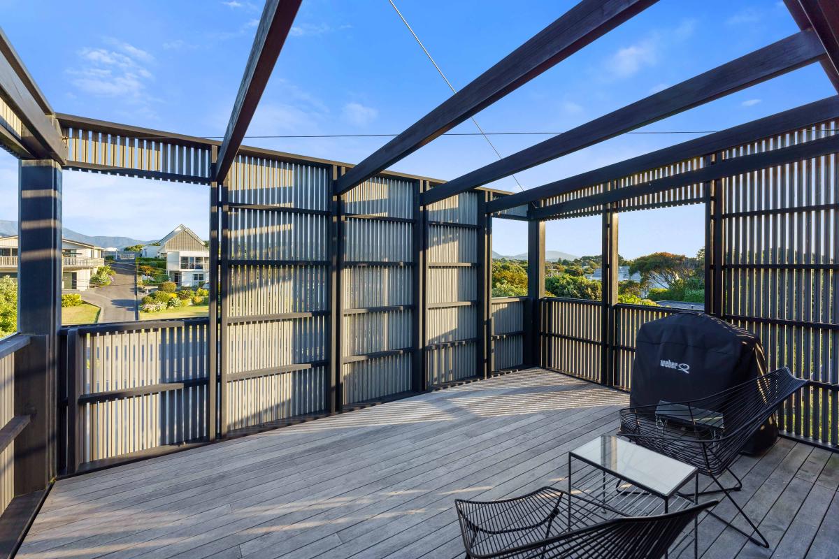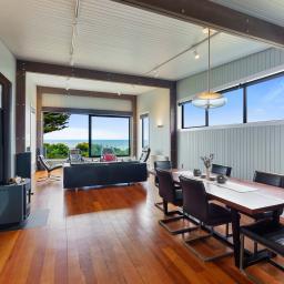 Accommodation is positioned with intention on the ground floor, set down for shelter, leaving the spectacular upstairs living to take centre stage. The master suite is a sanctuary in its own right, complete with a beautifully appointed ensuite and direct access to the expansive deck, where the rhythm of the tide becomes your daily backdrop. In total, the home offers two bathrooms and four separate toilets, thoughtfully configured for effortless family living and refined entertaining.