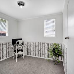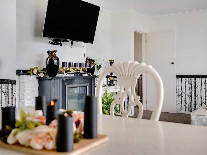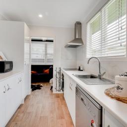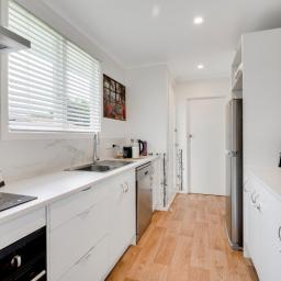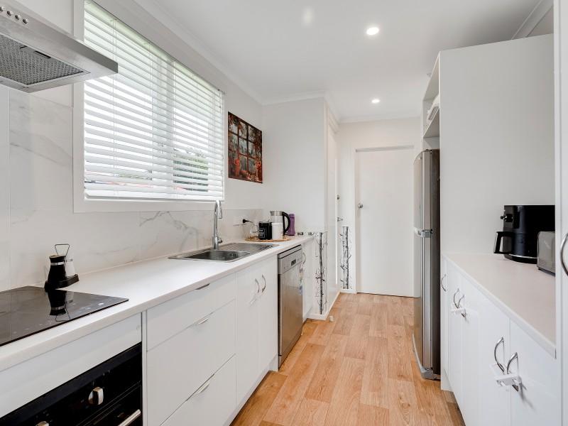 Inside, the home continues to impress with a brand-new kitchen featuring modern appliances, including a contemporary hob, oven, and rangehood. The open-plan lounge and dining layout offers flexibility for furniture placement and everyday living. The walls have been refreshed in neutral tones, complemented by stylish decorative wall mouldings that add character and visual interest. The functional layout provides good indoor–outdoor flow, supported by gas hot water for everyday convenience.