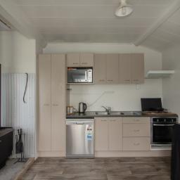 The modern kitchen offers good storage and is well equipped with an oven, separate cooktop, extractor fan and dishwasher. Positioned to allow space for both dining and casual living, it easily accommodates everyday family meals or relaxed movie nights. From here, you can keep an eye on children playing outdoors while enjoying the comfort of the living area.