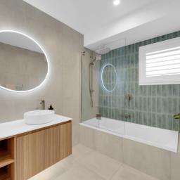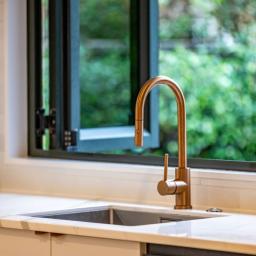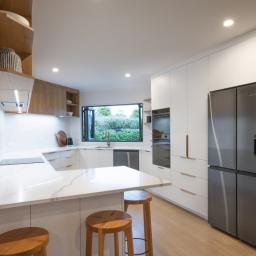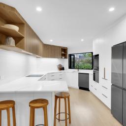 The heart of the home is the custom MGK kitchen, featuring twin pantry’s, sleek cabinetry, and an induction cooktop – perfect for those who love to cook and entertain. The interior has been carefully considered, with finishes modernly renovated and designed by Kerryn Elwin of KAE Interior Design, ensuring sophisticated aesthetic throughout.