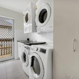 The north-facing main living area forms the heart of the home, welcoming abundant natural light throughout the day. Several north-facing bedrooms continue that warmth and brightness, creating an inviting atmosphere year-round. The multi-level design establishes a natural family hub for shared meals and everyday interaction, while still offering separation when different generations need their own routine or quiet retreat.