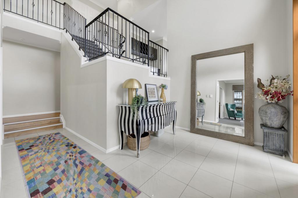 From the moment you step inside, the sense of scale is undeniable. A grand entrance with impressive ceiling height creates immediate presence, while the central staircase anchors the home with a layout that feels balanced, substantial, and thoughtfully composed.