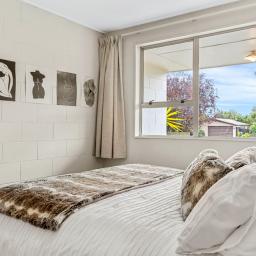 Bathed in natural light, the home delivers a warm and welcoming feel from the moment you walk in. The modernised kitchen is bright and practical, complete with quality appliances and cleverly integrated laundry space for everyday convenience. Flowing seamlessly through to the open dining and living zone, this is a comfortable setting to relax or entertain. A heat pump ensures year-round comfort, while sliding doors extend the living outdoors to an easy-care patio area.