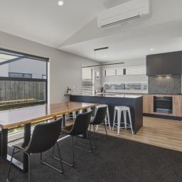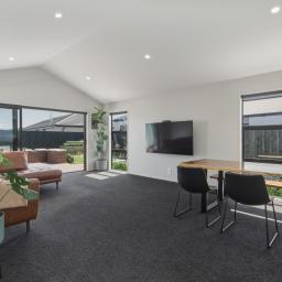 Step inside and be welcomed by the light-filled open plan kitchen, dining, and living area, enhanced by striking cathedral ceilings that create a wonderful sense of space. The kitchen forms the true heart of the home, featuring stone benchtops and a generous walk-in pantry, making everyday living and entertaining a breeze. Double stacker doors open seamlessly to composite decking, providing effortless indoor-outdoor flow to a superb entertaining area.