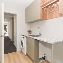 Outdoors, the fully fenced section features a stunning, well-maintained lawn, perfect for children and pets to play safely, raised vege gardens for those wanting to grow their own veges and handy pop up sprinklers to keep the green spaces lush.