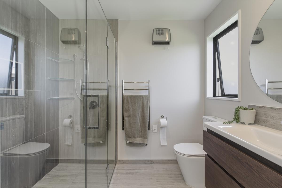 The home offers four bedrooms in total. Three double bedrooms, all with double wardrobes, are serviced by a well-appointed family bathroom and a separate toilet with basin. The master suite is a true retreat, complete with ranch slider access to the deck, a walk-in wardrobe, and an ensuite boasting a double tiled shower.