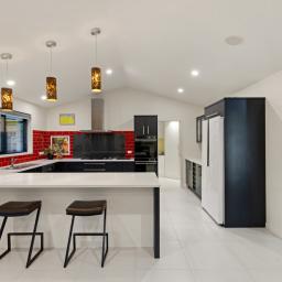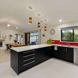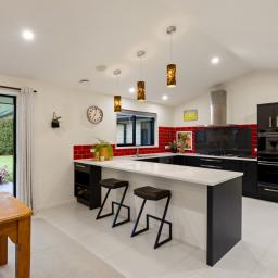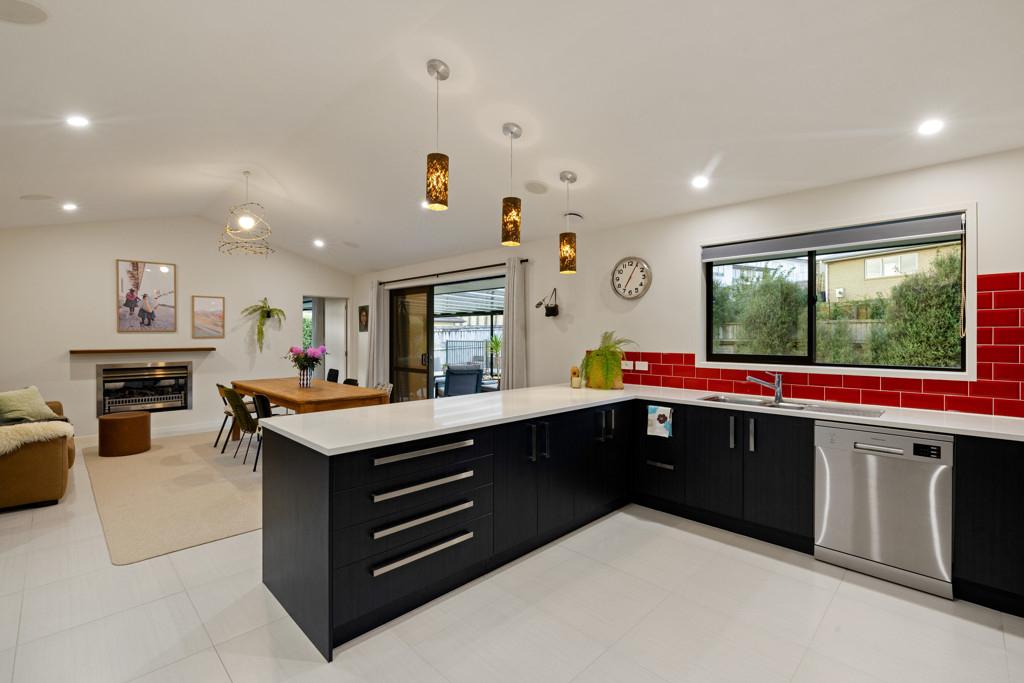 Designed around real life, multiple living zones allow the household to spread out or come together as needed. At its centre, the kitchen makes a confident statement with a striking feature splashback, generous workspace and a full scullery that keeps the everyday beautifully out of sight.