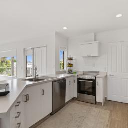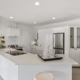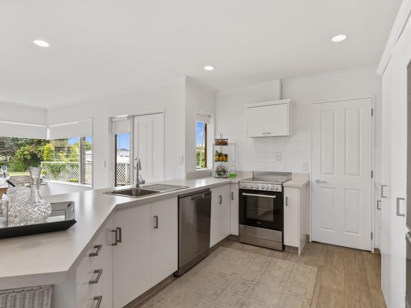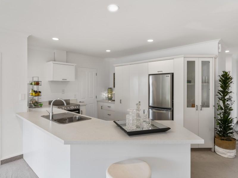 The well appointed kitchen suggests a practical layout, a built-in pantry, and room to roam for more than one.
