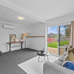 Inside, you'll find two generous bedrooms and light-filled open-plan living, kept comfortable year-round with a heat pump. The updated kitchen and bathroom add modern style where it counts, while recently replaced carpet and fresh paint inside and out give the home a crisp, move-in-ready feel. A new roof tops it all off, meaning the big-ticket upgrades are already done.