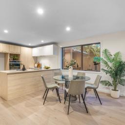 The 165sqm (approximately) residence has just been repainted inside creating a fresh, light-filled ambiance. Central heating/cooling on the upper floor enhances year-round comfort while timber laminate flooring in high traffic areas minimises maintenance. Open plan living has double doors connecting to sheltered, west facing courtyard with pergola covered deck and adjoining patio. Spread out, chill out, and dine alfresco or laze on sun loungers while a nearby Astro turf strip has a golf green for practice putts. The stylish kitchen follows the same light timber theme with copious cabinetry and stone topped benches setting the scene for modern appliances. A downstairs powder room is a handy inclusion while upstairs two tiled bathrooms have chrome fittings with master ensuite aligned with a spacious walk-in wardrobe. Double bedrooms are well appointed with ample closet space and there's a landing nook for a study desk. Plentiful storage throughout the home includes internal access double garaging integrating the laundry.