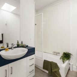 - Contemporary bathroom with skylight