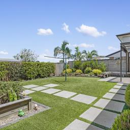 Downstairs boasts distinct living zones, including a separate formal lounge and an open-plan kitchen and dining area - all flowing seamlessly to a sun-soaked, west-facing garden. Enhanced with Eco-Lawn and professional landscaping, the outdoor area is designed for effortless enjoyment and year-round entertaining under a stylish covered pergola. A versatile fourth bedroom (or dedicated home office), full laundry, and internal access to a double garage complete the ground floor - perfectly suited to modern family dynamics.
