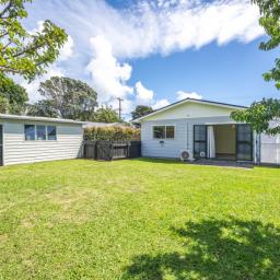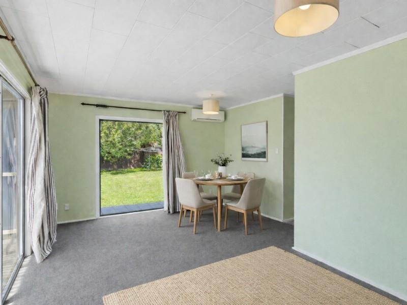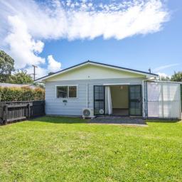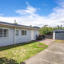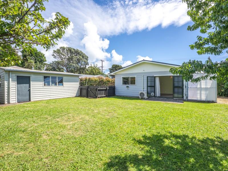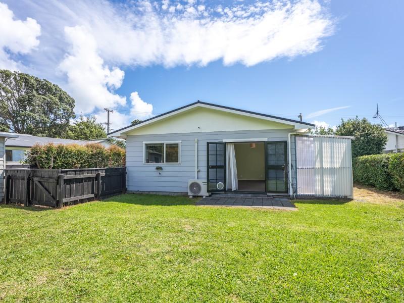 The home features two bedrooms and a practical layout with a separate shower, toilet, and bathroom. The lounge opens through French doors to the backyard, creating a relaxed indoor–outdoor connection and an easy place to unwind or keep an eye on the backyard. A heat pump provides year-round comfort, and the roof has recently been resealed, offering added peace of mind.