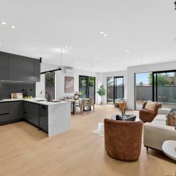 Discover contemporary, low-maintenance living in this boutique collection of five brand-new, freehold homes at Tawa Road, One Tree Hill. 55E occupies a private end-of-driveway position, wrapping around a beautifully landscaped garden and capturing sunlight throughout the day. With approximately 182sqm of internal space on a 294sqm site, this home is finished to the highest standard and comes with a 10-year Master Builder guarantee for complete peace of mind.