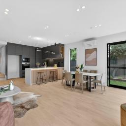 • Open-plan kitchen, dining, and living flowing to expansive deck and garden