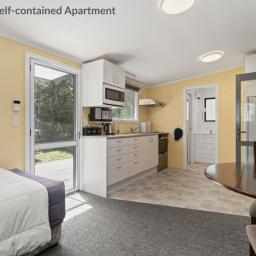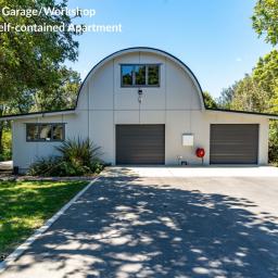 The separate double garage further elevates this property, complete with additional laundry space, workshop and storage areas, two automatic doors and internal access to the trendy self-contained apartment. Perfect for Airbnb, extended family, guests or rental income. The apartment offers open-plan living downstairs with a Daikin heat pump (room for a bed here too), and a huge bedroom/living/office area upstairs. Featuring its own kitchen and bathroom, gas infinity hot water, double glazing, insect screens and a 30,000L water tank for supplementary summer garden watering.