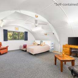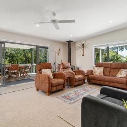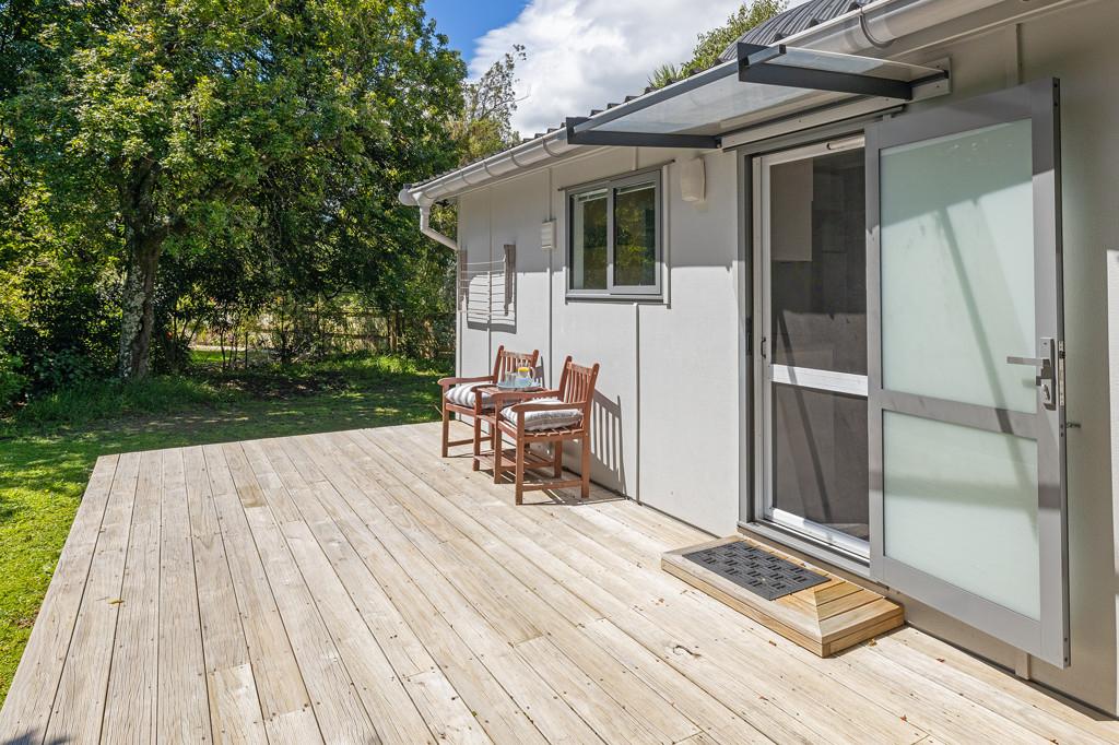 The main residence is a quality Highmark Home built in 2019, finished in durable wooden "Shadowclad" cladding for timeless appeal within the aesthetics of this fabulous property. Designed for modern living, it showcases light-filled open-plan spaces that flow effortlessly to a large covered deck - an inviting spot to unwind while enjoying birdsong and the peaceful leafy outlook. Three generous double bedrooms include a master with ensuite, while year-round comfort is assured with heat pumps/aircon and a woodburner.