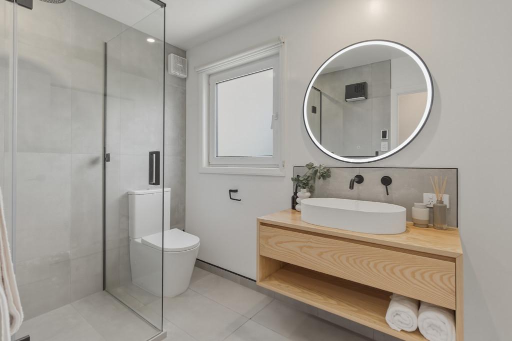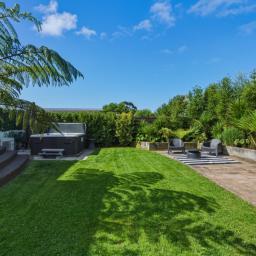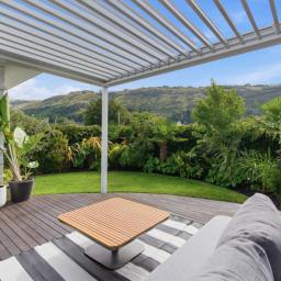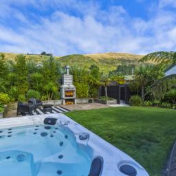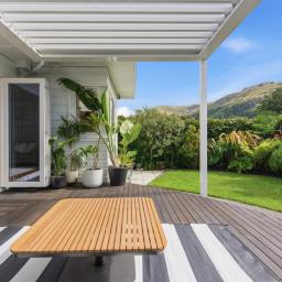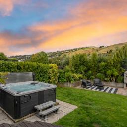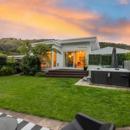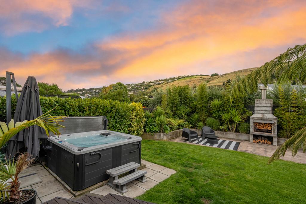 Outdoor living is equally well considered, with a louvred, sun-drenched front deck extending everyday living and entertaining, while the sheltered rear garden provides an established setting for gatherings or quiet afternoons. Framed by a soft hillside outlook, this space is complete with a spa for unwinding and an outdoor fire - perfect for relaxed evenings with family and friends.