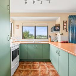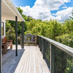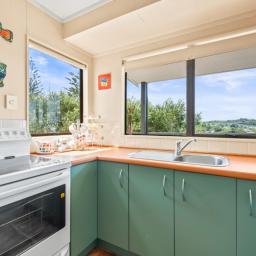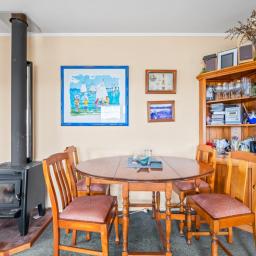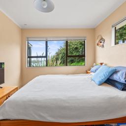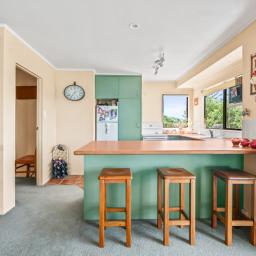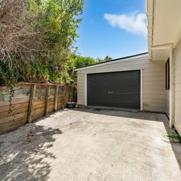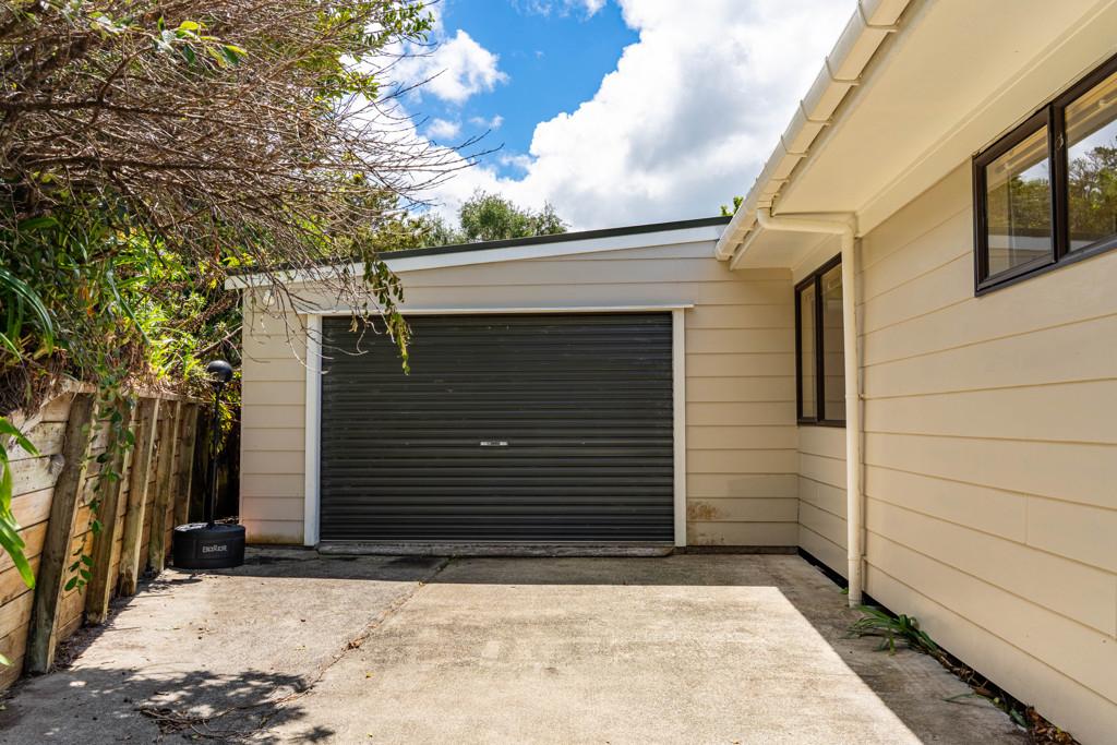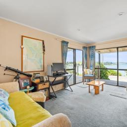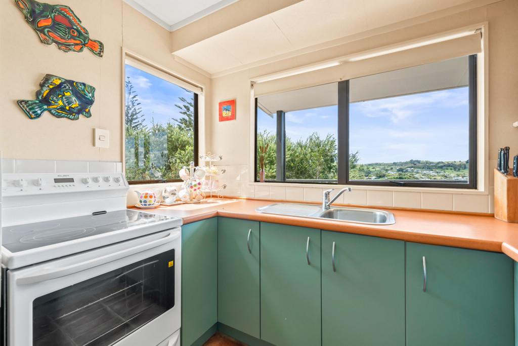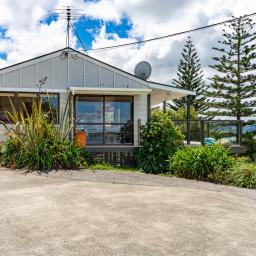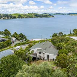 Extensive decking wraps around the home, providing an impressive platform for outdoor dining and soaking in the salt air from its high vantage point. The layout is practical and fully functional, featuring a bathroom with a shower, bath, and vanity, alongside a separate toilet. The garage with internal access adds a layer of convenience and security. While the house is well-maintained and ready to be enjoyed as a holiday bach or an Airbnb, it is also perfect for those who are downsizing and wanting a seaside retirement.