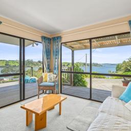 Commanding an elevated position that provides some of the best water views in all of Pahi, this two-bedroom home is perfectly situated to capture expansive vistas of the Kaipara Harbour, the Pahi campground, and across the water to Whakapirau. The tidy, open-plan living area is designed to make the most of this location, with sea views framed by every window.