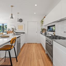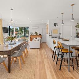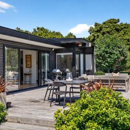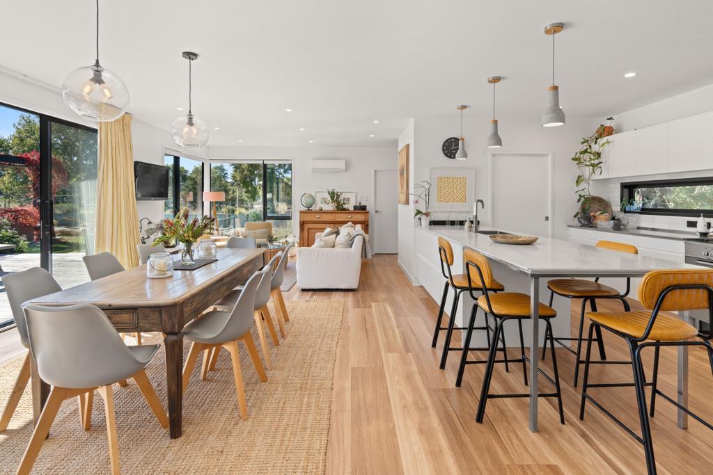 The generous 257sqm residence offers expansive open-plan living and dining that flows effortlessly to large Kwila decking and superb outdoor entertaining areas. A modern kitchen with walk-in pantry anchors the home, complemented by a second lounge providing flexibility for families or quiet retreat.