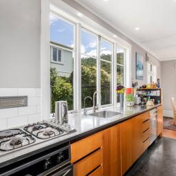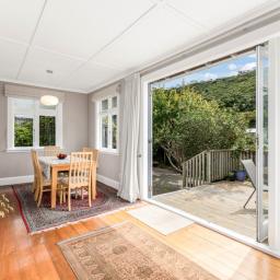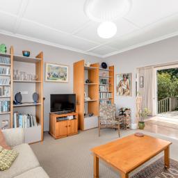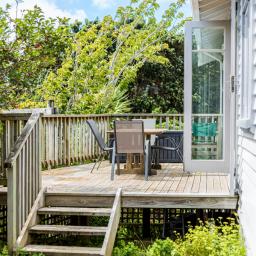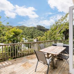The interior has been reconfigured to reflect modern living with a stylish and efficient galley kitchen, traditional living area with simply stunning views of Taputeranga Island in the bay and an adjoining living/dining area that opens to a large deck to soak up the sun or entertain your family and friends. This in turn leads to a sheltered paved area and a Goldilocks lawn (not too big, not too small) to ensure you can satisfy your need for a garden space or somewhere for the kids to play without excessive upkeep.