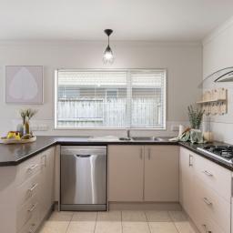 Spanning approximately 170sqm, the home offers a practical two-level layout designed for everyday comfort. Upstairs, you’ll find three double bedrooms, two bathrooms including the master ensuite, and a handy office nook, ideal for working from home or study. Downstairs, open-plan living, dining and kitchen spaces form the social heart of the home, complemented by a separate toilet, dedicated laundry, and a single internal-access garage. Weatherboard and brick construction ensures long-term durability with minimal upkeep.