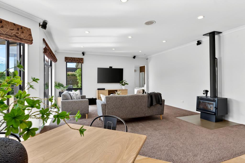 At the heart of the home, the chef's kitchen acts as a social anchor, boasting granite benchtops, a gas cooktop, and premium Miele appliances. From here, two expansive living areas unfold seamlessly. Whether it's a quiet night by the log burner or hosting a crowd in the second lounge by the back to back gas fireplace, the atmosphere is one of sophisticated comfort. Year round temperate living is guaranteed with double glazing, a heat pump, heat transfer system, and full insulation.