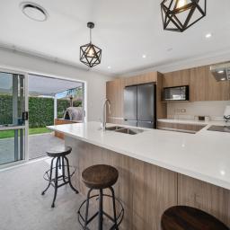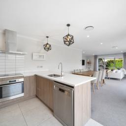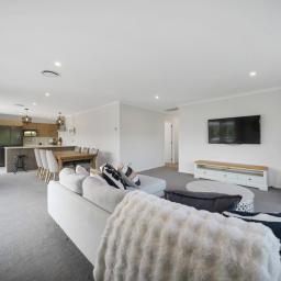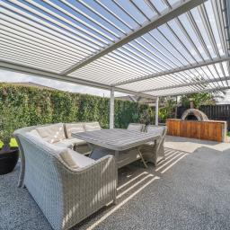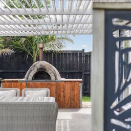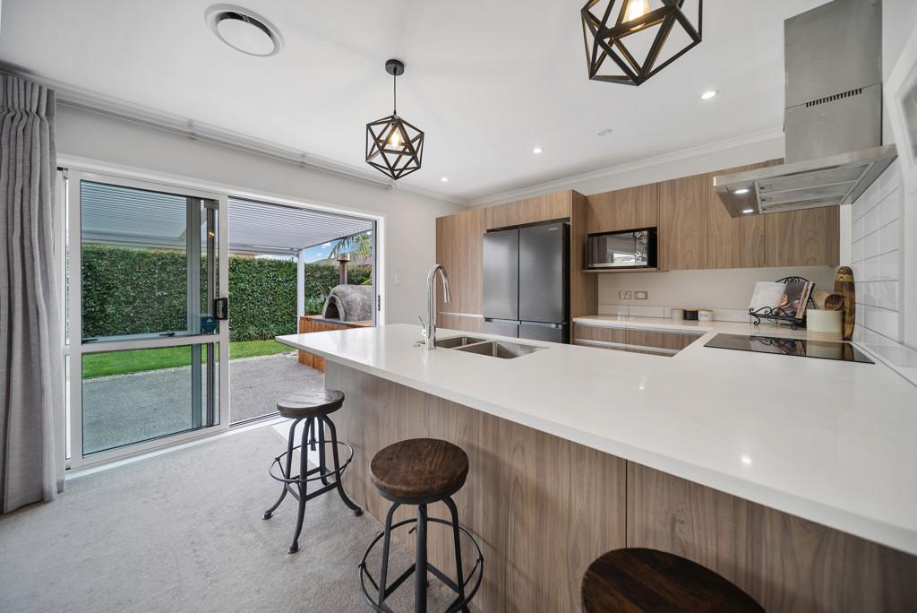 At the heart of the home, generous open plan living flows effortlessly to a covered outdoor entertaining area featuring a louvre system and outdoor pizza oven, an ideal setting for relaxed family meals, celebrations, and year round entertaining.