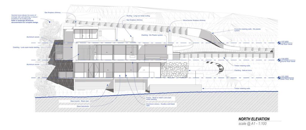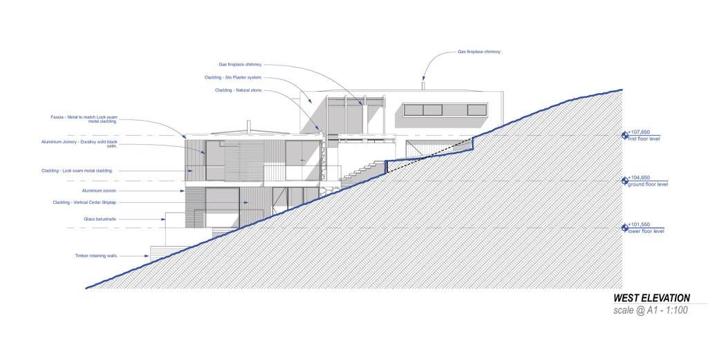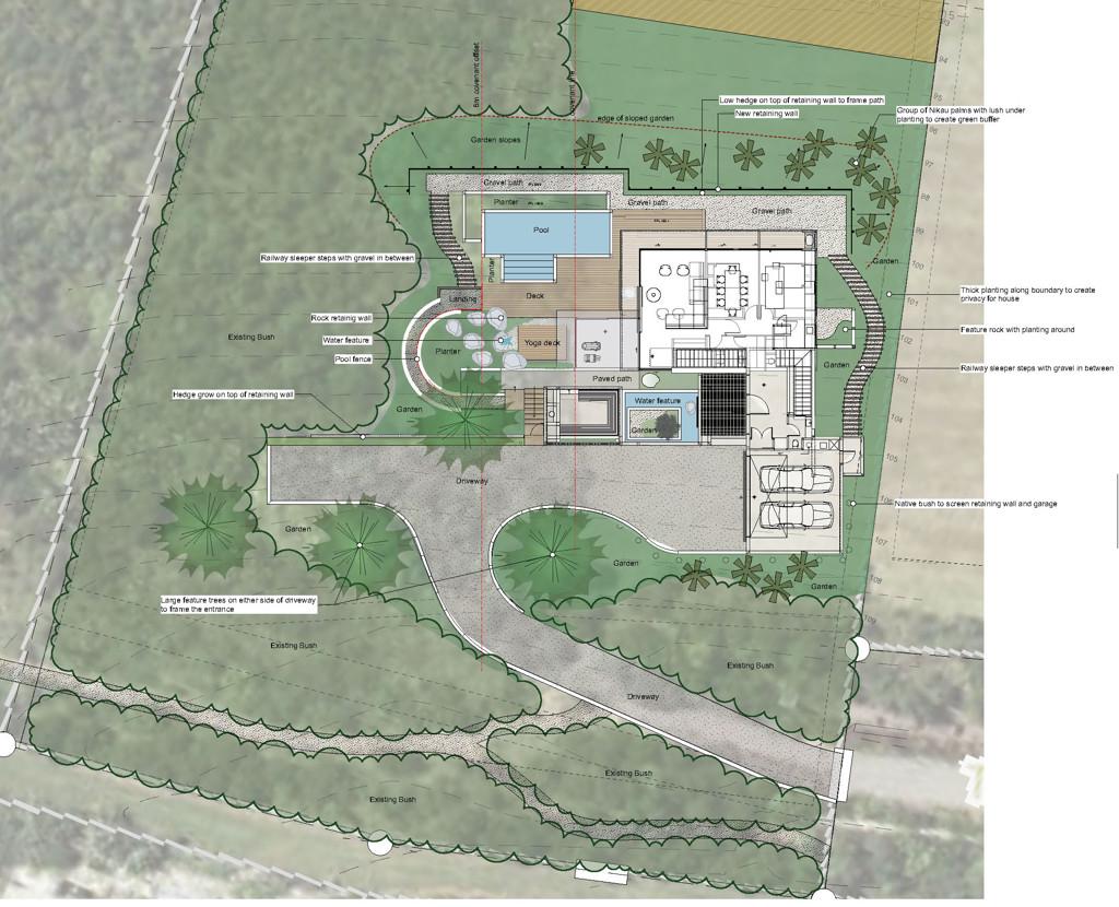 Resource consent: Architecturally designed residence lodged with the council and awaiting approval.