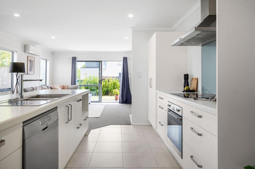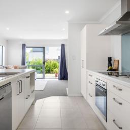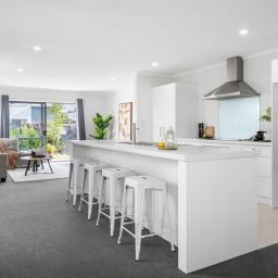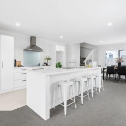 Designed for effortless day-to-day living, the ground floor centres around a light-filled open-plan environment where the kitchen, dining, and living areas connect naturally. The kitchen is well-appointed with quality appliances, ample storage, and a generous island bench that doubles as both workspace and social hub. Sliding doors extend the living outdoors to a fully fenced, easy-care section - secure for children and pets, yet refreshingly manageable for busy households.